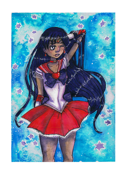 Fanart of Sailor Mars, Rei Hino, from Sailor Moon. Painted with watercolors.
